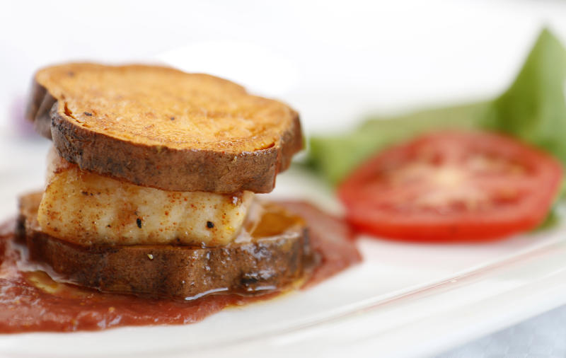 Grillezett hús (jelen esetben harcsafilé), sült krumpli (jelen esetben édesburgonya), saláta, paradicsom karika, hagyma (azaz snidling) és némi szósz, akkor mi az ebben, ami nincs egy hamburgerben?