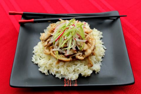Ebben a receptben inkább a csirkemell hátterezik a gombáknak, mint fordítva, így vegáknak is alkalmas a recept, ha egyszerűen csak kihagyják belőle a húst. A két széleskörben szerte a világon ismert és használt ázsiai eredetű gombafajta tökéletesen kiegészítik egymást, ízben és állagban egyaránt. Fontos, hogy a Shimeji gombát hagyd úgy, ahogy van, ne szabdald, rövidítsd. A gombák homogén fehérségét megtöri a vékonyra szeletelt friss zöldség üde színe és ropogós állaga.