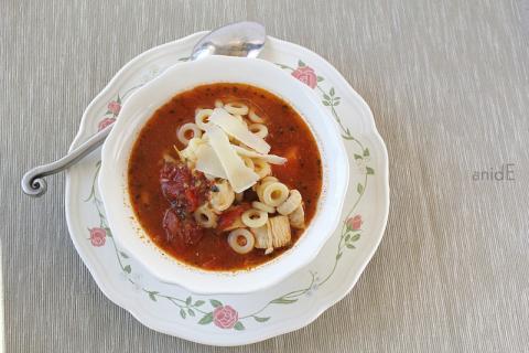 Bármennyire is imádod az olasz tésztákat, mindenkinél eljön az a pillanat, amikor unni kezdi a tészta-szósz-ragu variációkat, akármennyire is variálod ezeket. Ilyenkor jöhet a mentőötlet: főzzünk egy gazdag levest, jó olaszosan, paradicsommal persze. Főzz bele egy sajátságos formájú levesbetétnek is jó tésztát (mint én most az Anellivel tettem) és elégedett is lehetsz vele. Hát még ha a gyermekeid már napok óta rágják a füledet, hogy főzz paradicsom levest. Ahogy azt az oviban megszokták. Az enyéim csak addig mondták, hogy ez a "paradicsom leves" nem úgy néz ki, mint az oviban, amíg meg nem kóstolták. Megették, aztán kértek még...